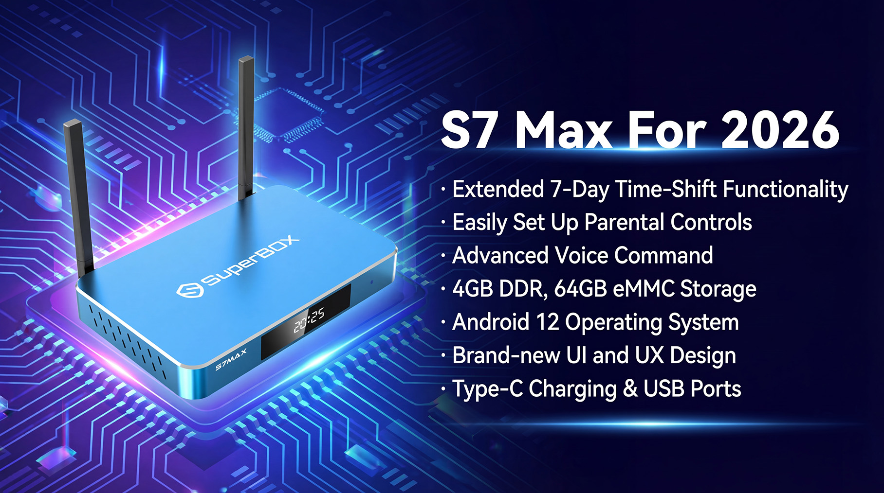 Take charge of your entertainment with the Superbox' intuitive controls. Whether it's voice commands or the easy-to-use remote, navigating through your favorite content has never been easier. Enjoy more time watching, less time searching.